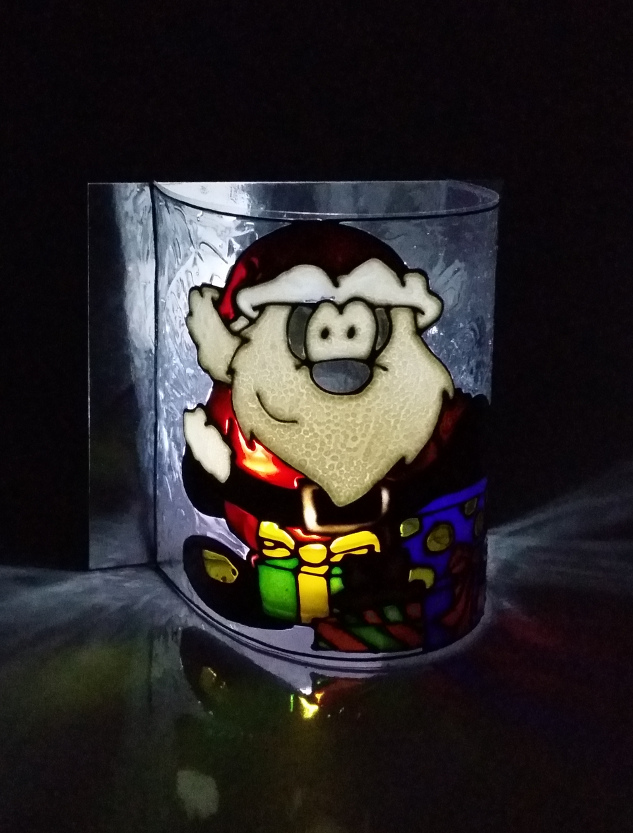 Father Christmas Glass Painted Lamp.