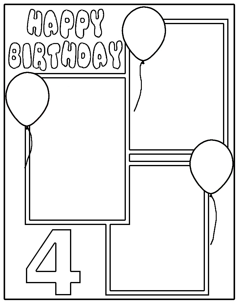 Finally I added the extras (Balloons, Wording, number 4) and the frames around the photos. As well as the full colour copy of the design I also did a basic design copy in black and white and without the photos. This would be my template. (Actually I did it black and white without thinking. I should have made it green and white to make the outlining easier). Once you have finished the design print off a full size copy of the black (green) and white template to work with and save the full colour copy for reference.